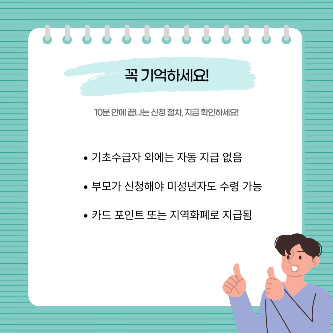 → 일부 기초생활수급자만 자동 지급되며, 대부분은 직접 신청해야 합니다.