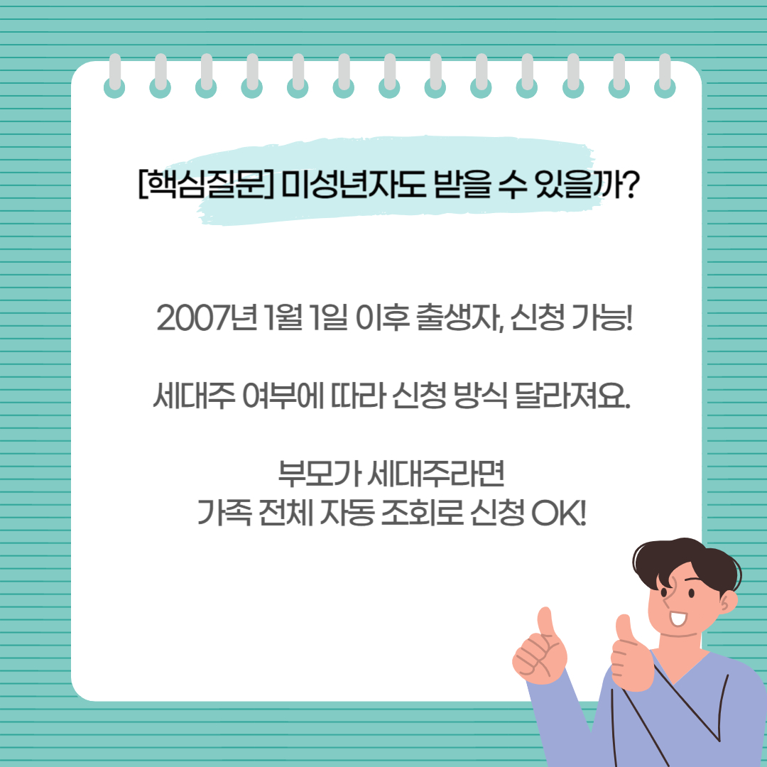 미성년자도 신청 가능, 단 세대주 여부가 중요