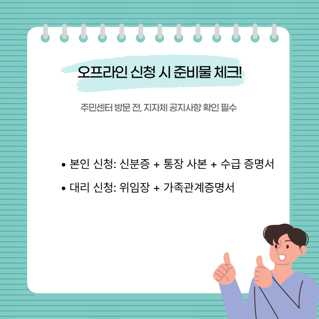 온라인이 어렵다면 주민센터 방문도 가능하다. 다만, 필요한 서류를 빠짐없이 준비해야 불이익이 없다.