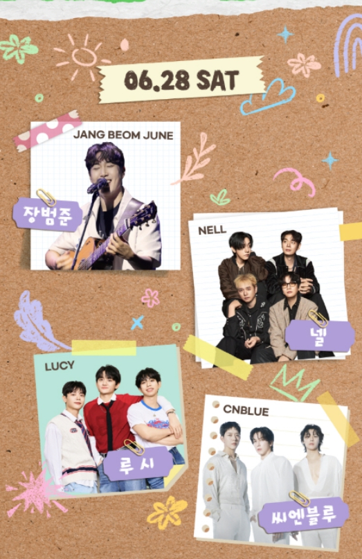 - 6월 28일 (토): 장범준, 넬, 루시, 씨엔블루, 기리보이 등 다양한 뮤지션이 무대를 수놓습니다.