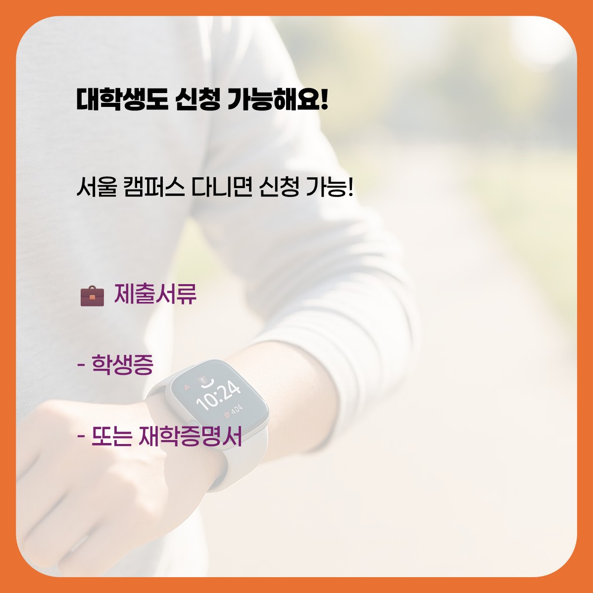 | 서울 대학생 | O | 학생증 또는 재학증명서 | 서울 캠퍼스 기준 |