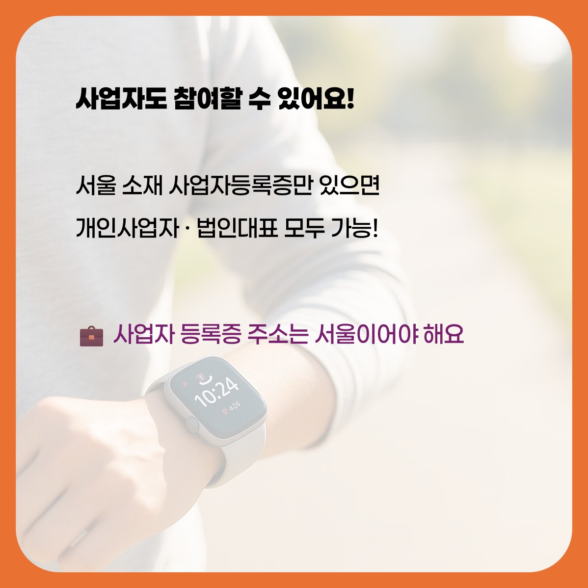 서울 내에 등록된 사업체를 운영하고 있는 개인사업자 또는 법인 대표자도 신청할 수 있다.
